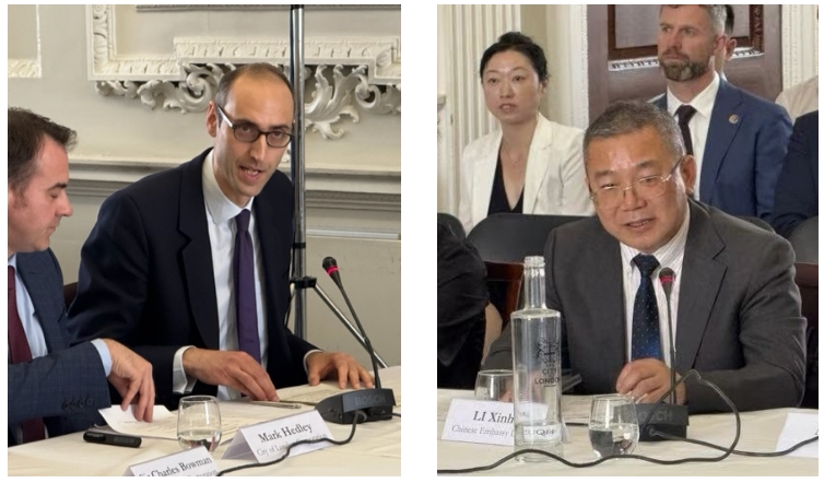 左:英国驻华大使馆参赞贺维尹,右:中国驻伦敦大使馆参赞李新海